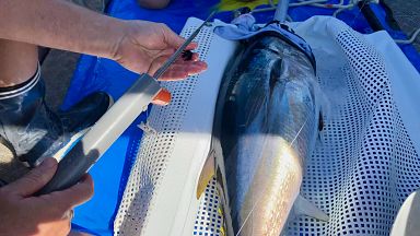 "Esta é a única ferramenta que realmente nos permite rastrear migrações individuais de atum", diz Tristan Rouyer. “Programamos para gravar temperatura, pressão e luz. Com essa informação, podemos reconstruir o caminho do animal.”