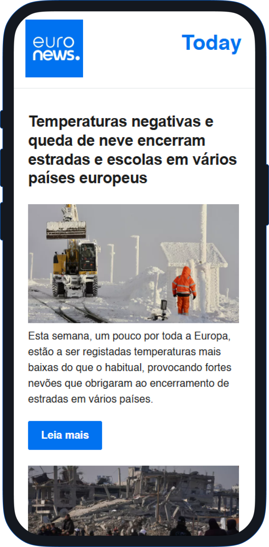 A nossa newsletter diária, elaborada pela redação da Euronews e enviada diretamente para a sua caixa de correio, inclui resumos rápidos e fidedignos, análises perspicazes e artigos aprofundados.